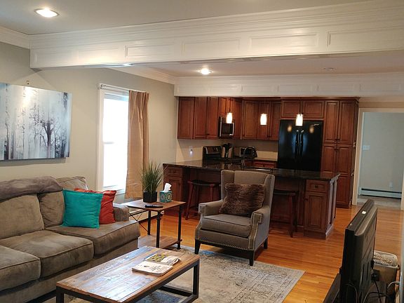Come see this fantastic, updated 4 bed 2 1/2 bath colonial in the popular Morley Elementary neighborhood. You will love the flow and space in the open concept kitchen, dining and family rooms. Gorgeous wood floors and extensive millwork adorn the home including crown molding throughout. The cooks kitchen has granite counters including peninsula, Bosch stainless 5 burner gas range, and pendant and recessed lighting. The dining area is spacious and has a slider to the brick patio and the formal living room is home to the wood burning fireplace. Upstairs are 4 bedrooms and 2 full baths including the master bedroom suite with sumptuous master bath featuring granite double vanity, soaking tub and separate shower. The large, lower level is great for a playroom, gym and home office and has 2 finished rooms and 2 storage areas. Enjoy reading in the sunny, 3 season front porch or having cocktails and BBQ on the back patio. Other bonuses include mudroom, replacement windows, central vac, gas heat and newer 200 AMP electrical panel. Very cute home in true move in condition and priced to sell!