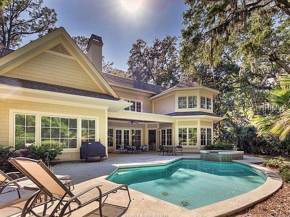 CLOSE TO THE BEACH!! Newer style, quality home built in 2007. 6 BR's, 8 BA home w/over-sized 3 car garage. Kitchen has many upgrades including a gas stove & double oven. 1 master down & 1 master upstairs plus office/den with full bath and 3 en-suite bedrooms. Bonus/media room w/full bath & wet bar. Spacious covered outdoor living area complete with a fireplace, private pool & pool bath. Some features include: beautiful heart of pine floors, walk-in pantry, butler's pantry & hardi-shake exterior. A short walk to the beach. Great short-term rental or 2nd home getaway home. One of the nicest homes for sale in all of Sea Pines.