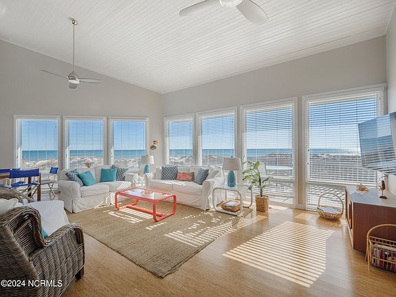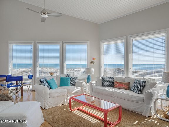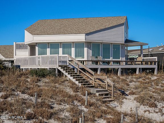 Wonderful ocean front home situated on a highly sought after center island lot location. Enjoy tranquil ocean views from the open living, dining and kitchen areas. 4 bedroom and 3 baths are located off of the main living area. The top floor features a large loft space with views of the ocean and a roof top sound side deck to take in sunsets over the sound and ICWW. Conveniently located near the tennis/pickle ball courts and boat ramp. Sold fully furnished. Excellent rental history. Figure Eight Yacht Club Warrant included. Excellent lot for those interested in building their dream home on Figure Eight Island...see MLS listing #100425189