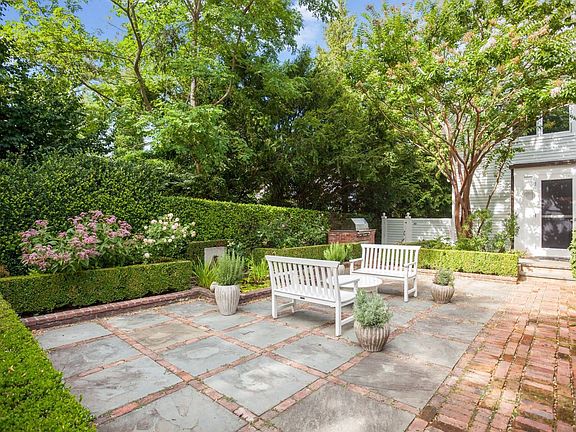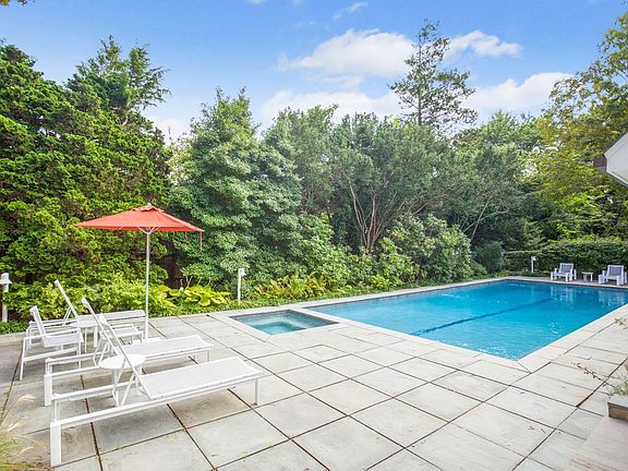 One of Bellport Lane's largest properties within short walking distance to downtown shopping and ferry to Bellport's private ocean beach. Built in 1858 by Zophar Hawkins Tooker, this is the only true street-to-street lot stretching fully from Bellport Lane back to Academy Lane, with garage and driveway access on Academy Lane. This 5 bedroom, 3.5 bath home includes a heated gunite pool with spa, large patio around pool, screened dining room, separate patio with water feature, and beautiful mature landscaping which gives extreme privacy. The home has 3 wood burning fireplaces, high ceilings, and a temperature controlled wine cellar in the basement. The third floor walk up has a gym and rooms for additional use/guest quarters. This is a rare secluded retreat in the heart of Bellport Village ready for you to enjoy.