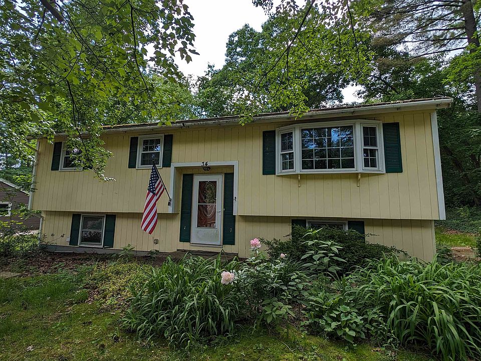 Did you say a home for sale in Southern New Hampshire that is affordable?!?! Well, yes, and with a little TLC you can make this home shine! Located in a super sought after neighborhood, just off exit 12 on Route 3, with easy access to all that Bedford and Merrimack have to offer - restaurants, shopping and outlets too! 10+- years ago the Sellers added the sunroom with gas heat stove (not included in the sqft) and updated the kitchen, both of which are spacious and offer views of the private backyard. Living room with hardwood floors. 3 bedrooms with hardwood floors. 3/4 bath. The Seller moved the laundry to the 1st floor, so it is currently in a bedroom...but it could easily be relocated back to the lower level. Backyard with shed for all your outdoor storage needs. Bring your vision and a little sweat equity to make this house your home. Property is being sold "as is"