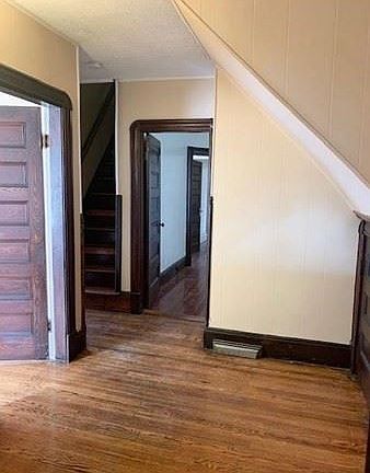 Nice 4 BR apartment for lease with beautiful hardwood flooring and plenty of closet space. 2 floor layout - 2 bedrooms on 1st and 2 on the 2nd floor. Laundry hook-ups are on first floor in kitchen pantry. There's also a fenced-in backyard, tenant responsible for lawn & snow removal.