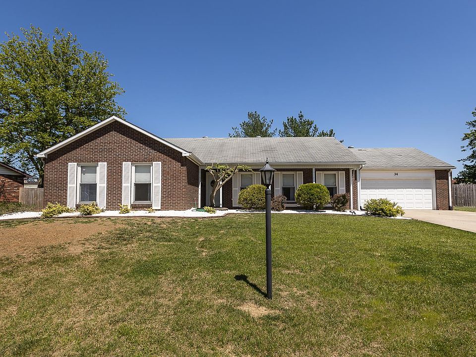 Wolf Branch School District. Great curb appeal! Located on a large fenced, cul-de-sac lot, this ranch home includes over 2100 sq ft. You'll love the updates found throughout. No carpet in this home. The large living room leads to the formal dining room. The kitchen features new countertops, beautiful backsplash & dark cabinetry. There is a large family room with a fireplace perfect for a game room. The master suite is beautifully finished as is the hall bath and the additional 2 bedrooms. A real bonus is the addition which includes a full bath with a whirlpool tub. could be a 4th bedroom or an office. It leads to the fantastic back yard with a covered patio, a shed and an awesome "she" shed. Currently used as a craft/painting area and it's complete with a loft. So many uses come to mind. You right in the middle of dining, shopping and so close to the major highways. New furnace & AC 2022. A NEW ROOF WILL BE INSTALLED SOON. Buyer to verify all information.