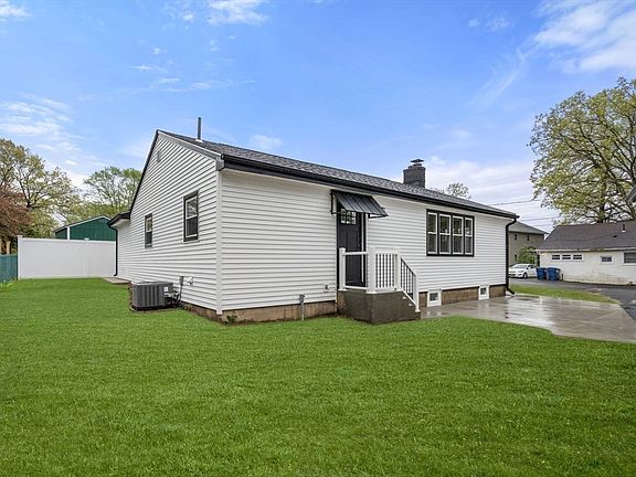 Nestled on a beautiful lot directly across the street from Hampton Pond, HUGE 2 car garage!!! This beautifully updated ranch offers the perfect blend of comfort and convenience on just under a 1/2 acre lot. This move-in ready home features one-level living with abundant natural light, an open floor plan with water views, and a striking fireplace in the living room. The entire house has been thoughtfully renovated, including a beautifully updated kitchen and bathroom. Off the kitchen, a 3-season porch provides additional space for relaxing or entertaining. The large basement includes a finished room, the perfect flex space. A spacious two-car garage with electricity adds storage and flexibility. Recent updates include a brand new roof, septic system, central air unit, all appliances, new windows, a new paved driveway with additional parking, new vinyl siding on both the house and garage, and privacy fencing.