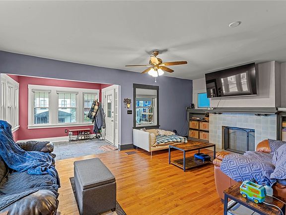 Enter to a sunroom with abundant light. Living room features hardwood floors and decorative fireplace and opens to the nicely appointed dining room. Beautiful white kitchen with stainless steel appliances and ample countertops. 2nd floor has 2 bedrooms and an updated bathroom. BONUS 3rd FLOOR has 2 added rooms....office, rec room, workout room, etc. Half bathroom in basement level. Tons of natural light throughout and nice closet space. Newer carpets in bedrooms and halls. Newer front door. Enjoy the covered front porch and patio located off the kitchen. Backyard is tranquil and easy to maintain. 1 car integral garage. Easy access to Downtown Pittsburgh!