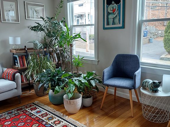 Beautiful townhouse with private yard and parking. It feels like a single family! -Available August 8th. Located in the very short distance to Oak Grove Orange T-line and a commuter rail to North Station. -The home can be rented furnished or unfurnished. -Excellent layout: first floor welcomes to the living and dining rooms, kitchen and half bathroom. Two good size bedrooms and full bathroom with a tub are located on the second floor. -Stylish kitchen with white shaker style cabinets, natural wood open shelves, beautiful countertops and stainless steel appliances. -TWO fantastic perks come with the townhouse: 1. The lower area (basement) could be used as an extra bedroom, exercise room, guest bedroom or man's cave. 2. A separate structure in the yard allows to have an office, or an extra bedroom, or a guest space. -Private laundry in the basement -Parking for 2 or 3 cars -The unit can be rented furnished or unfurnished. -Available August 8th Contact the listing agent for more details. Renters pay all utilities such electric, heat, gas cooking and tele-communication Renters are responsible for snow removal and care of the lawn. The Landlords pay water and sewage. The property can be presented partly furnished or unfurnished.