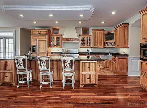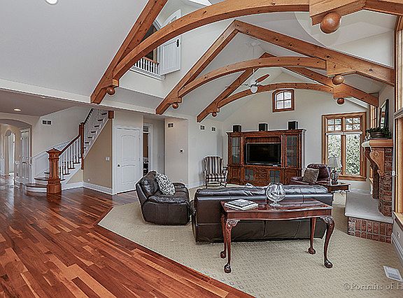 Built in 2000, this truly custom brick and stone home includes 5 bedrooms, 4.5 baths, 4 car heated tandem garage and over 5,600 SF plus a finished english basement with approximately 2500 sf that has 2 additional bedrooms, a 2nd family room with fireplace, media room, full bath and bar! It is a great combination of traditional styling with a casual flair. The heart of the home is a spectacular open vaulted wood beamed family room with stone fireplace and enormous gourmet kitchen area that feels like it is right off a Colorado mountain. Features include spectacular millwork, hardwood floors, custom kitchen with high end appliances, newer carpeting, large mudroom, 1st and 2nd floor laundry rooms, oversized master bedroom with fireplace and HUGE walk-in closets. PLUS it is situated in a quiet location backing to a pond and 1 block from the community park.