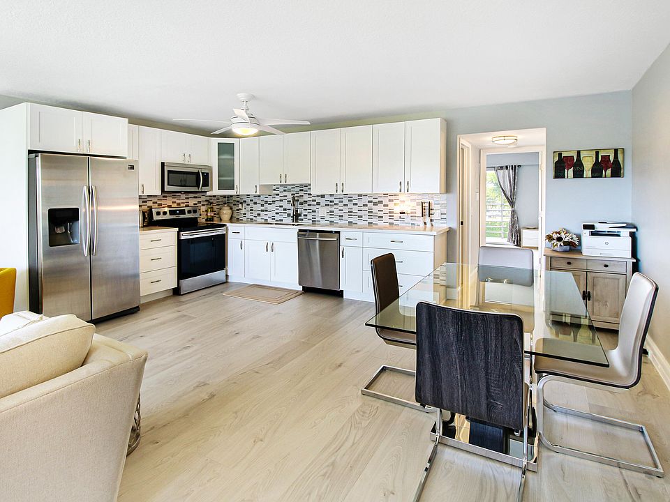 Remodeled and ready to move in! Don't miss out on this open floor plan condo featuring, waterproof laminate flooring in main living area, real wood soft closing kitchen cabinets and vanities with granite countertops, and enclosed balcony with additional storage area. All remodel work and upgrades have been permitted with the city and approved by the association completed in 2018. Great condo for a full time resident, snowbird OR INVESTOR! Can rent right away! Century Village offers an active lifestyle with a 24 hour manned gate, fitness center, live shows, movies, transportation buses, bingo, card rooms, tennis, community pools and so much more!