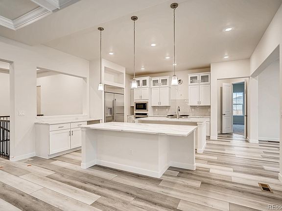 The Ballesteros is a sprawling single-story luxury home that wows! Castle Valley is Castle Pine's newest community with the best location in Douglas County close to amenities like shopping, dining, entertainment, and major traffic thoroughfares. This ranch-style (one level living) home provides plenty of space for the entire family, with three spacious bedrooms each with their own full sized bathroom and walk-in closet, a three-car garage with added storage space for a golf cart or toy of your choosing, an elegant formal study with French doors, lovely dining room that's perfect for entertaining over holidays and special events for years to come, and a quaint covered back deck. The truly gourmet kitchen delights with full stainless steel appliance package with refrigerator, gas range, double ovens, and two massive center islands that make a big statement. The family room is adorned with a decorative coffered ceiling, feature fireplace, and wall of windows that stream in natural sunlight. The main floor master bedroom has a spa like luxury en-suite bath with corner tiled shower, dual vanity, and enormous walk-in closet with direct access to the laundry room. Lennar's Everything Included package has front yard landscaping done for you and this home is loaded with upgrades for a phenomenal value. This homesite sits on a corner lot with an incredible covered deck. Visit today to see why everyone loves calling Castle Valley home!
