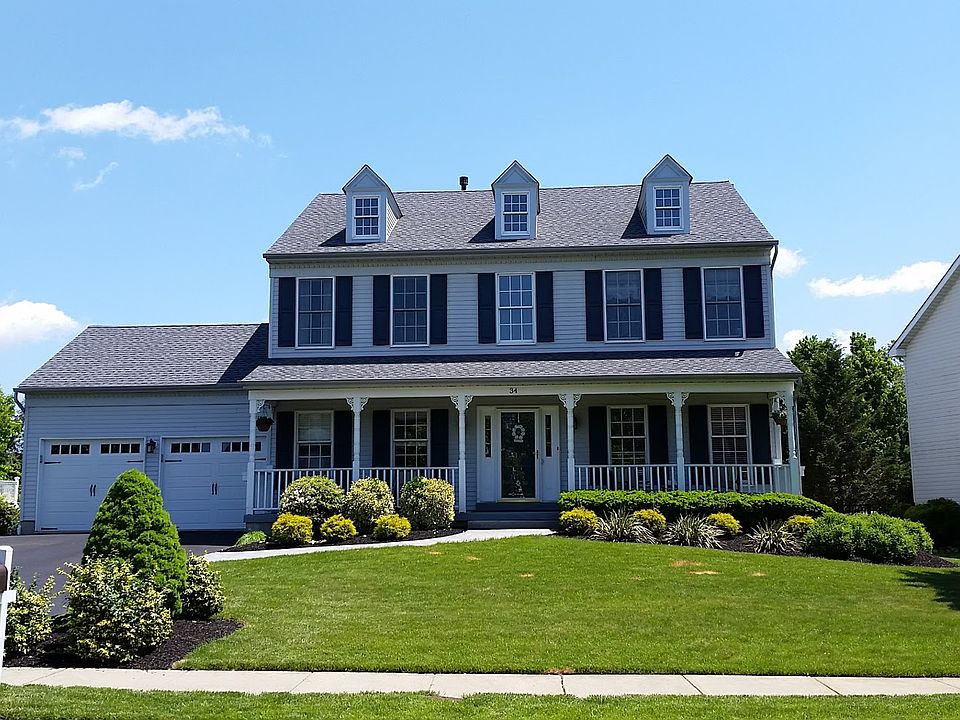 Desirable Moorestown Hunt. The Northampton model has a wonderful floor plan. Full front porch opens to a two-story foyer, Classic 4 bedroom colonial with open concept kitchen and family room. The added appeal of a large sunroom addition built in 2000. Hardwood floors, crown mouldings & chair rails detail the formal dining room are also reflect in the formal living room. Gas brick fireplace in family room, hardwood floors, wooden shades for privacy. Spacious master bedroom with Jacuzzi tub and walk in closets. All 4 bedrooms are carpeted. The full finished basement. Ceiling fans in all rooms, except dining room, and living room. Central air also extended to sunroom.