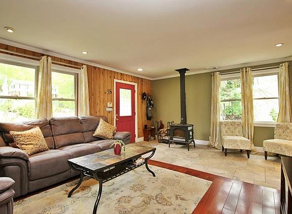 Elegant and Immaculate one level living in the desirable Roaring Brook Lake Community! This ranch style home feels so much larger that stated with a beautiful open floor plan, high ceilings, deep closets, and spacious rooms throughout. Open the door to an inviting living room area with a wood burning stove to provide warmth and relaxation. This space flows nicely into a modern, updated eat-in-kitchen and dining room combination, with sliding glass doors leading to an excellent deck for entertaining. This lovely home also features a large master bedroom, a sizable second bedroom, and an updated full bath. The property is gorgeous, level and private. The flat driveway offers plenty of parking and the basement provides lots of storage space. This home keeps on giving and the best part yet is the loaction! Enjoy the most beautiful beaches, swimming, fishing, kayaking and so much more on this glorious body of water. Less than 1 hour from NYC! Taxes with star savings are only $6356!