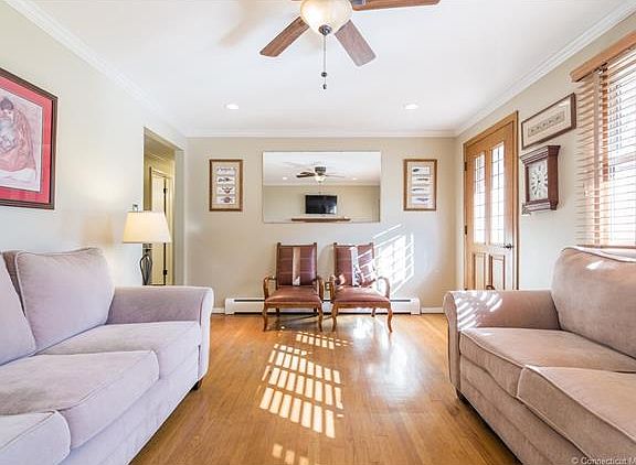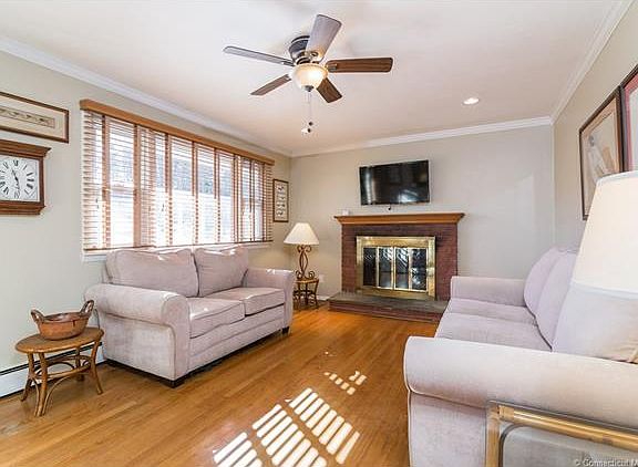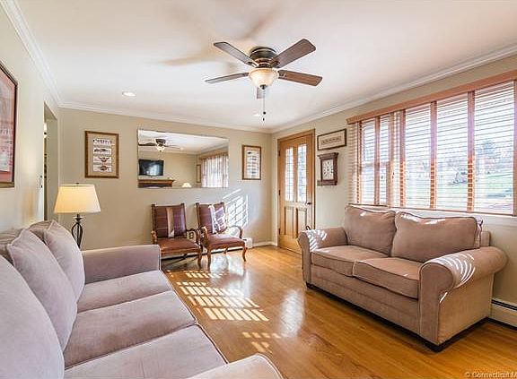 Adorable and affordable one floor living in wonderful Wallingford neighborhood. Set on quiet street with easy access to highways. This cozy ranch offers 3 generous sized bedrooms, spacious kitchen and large living room with warm and inviting fireplace. The walkout lower level is an added bonus. The cute yard offers huge deck and above ground pool. Beautifully appointed with crown molding in nearly every room and gleaming hardwood floors, along with newer roof, siding and windows. And enjoy the benefits of Wallingford Electric. All you have left to do is move in and enjoy easy living.