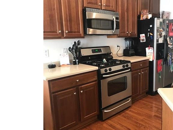 Lovely END UNIT Townhome located on a large corner lot, backing to tree line, with over 2600 square feet on finished living space. Potential Lease Purchase for qualified tenant. The open floor plan features hardwood floors on the first floor, Kitchen with Solaris counter top, 42" cabinets stainless steel appliances and a breakfast bar. The kitchen opens to a separate breakfast area and morning room with access to the large deck with gorgeous views of the tree line and stream. The living room features a marble surround gas fireplace and is open into the kitchen and morning room. This level also offers a formal dining and living area. On the second floor you will find a master bedroom with vaulted ceiling, large walk-in closet and a private bath with whirlpool tub, stand up shower, double bowl sink and vaulted ceiling with skylight. The laundry room is conveniently located on the 2nd floor as well and features a laundry tub and storage options. The two remaining bedrooms are good size with large closets, ceiling fans and are serviced by the hall bath. The basement is finished with recessed lighting, stone fireplace and exits to a great paver patio. This wonderful, spacious home offers many options for care free living and entertaining. Association payment Included in Monthly Rental!