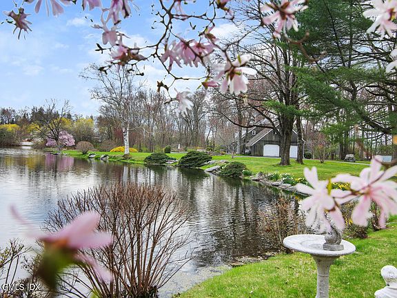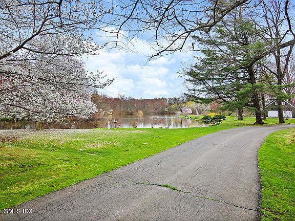 A long drive leads to spectacular 2.9 acre lakefront property set off bucolic country lane with open lawns, majestic oak and towering evergreen accented by flowering magnolia, cherry, apple and dogwood. Enjoy classic outdoor swimming, fishing, skating and canoeing activities close to this light-filled, 4-bedroom early colonial reproduction. Stunning views from living room, dining room and 1st floor master suite overlooking lawn to waters-edge. Extraordinary opportunity to expand/renovate this well-loved home for over 50 years or to build anew amidst some of Greenwich's most valuable real-estate. Unique pool and brick terracing with irreplicable setting.