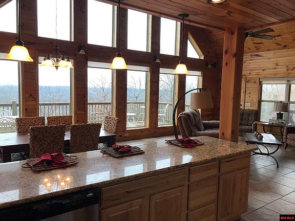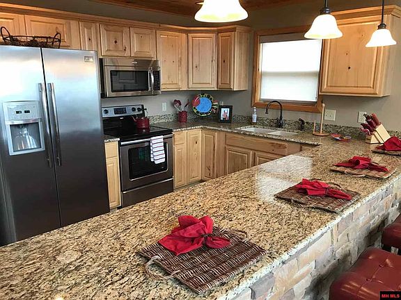 MAGNIFICENT 3 LEVEL LAKE HOME with a commanding view of Norfork Lake and miles beyond. Open great room plan w/vaulted wood ceilings, dramatic 2-story stone fireplace and a massive wall of windows. Large kitchen w/granite counter tops. Relaxing loft family room, giant recreational room w/kitchenette and fireplace in the full walk-out basement. Big open deck and covered patio. Close to town and lake access.