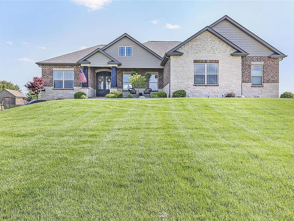 Remarkable custom built home perfectly situated on 2 acres in the highly desired Fawn Meadows subdivision. This home boasts both luxury & design from the open & spacious split bedroom layout to the finest details. Beautiful double door entry leads to spacious great room with stone fireplace & custom built-ins. Beamed ceilings create so much interest! Lots of natural light throughout. Designer inspired kitchen is a chef's delight! Soft gray cabinetry, marble countertops & center island creates a perfect entertaining space. Dining area leads to the covered, stamped concrete patio overlooking the manicured backyard. Expansive master bedroom with on-suite bath & large walk-in closet. Fully finished basement with family room, wet bar, 2 bedrooms & full bath. So many upgrades! Tankless water heater, sprinkler system for the entire 2 acres, & an underground pet fencing system to name a few. No detail has gone unnoticed! Call today to set up your personal tour!