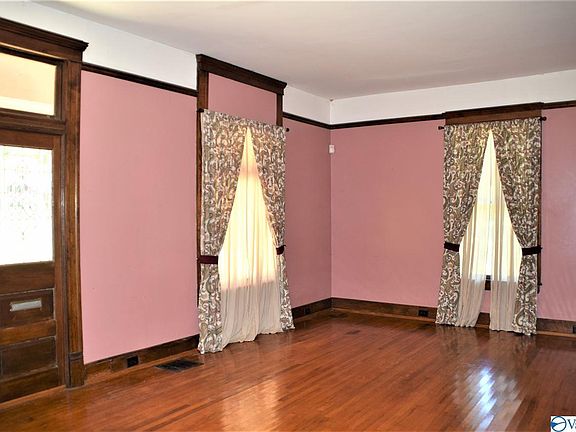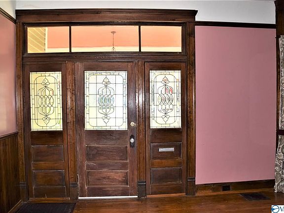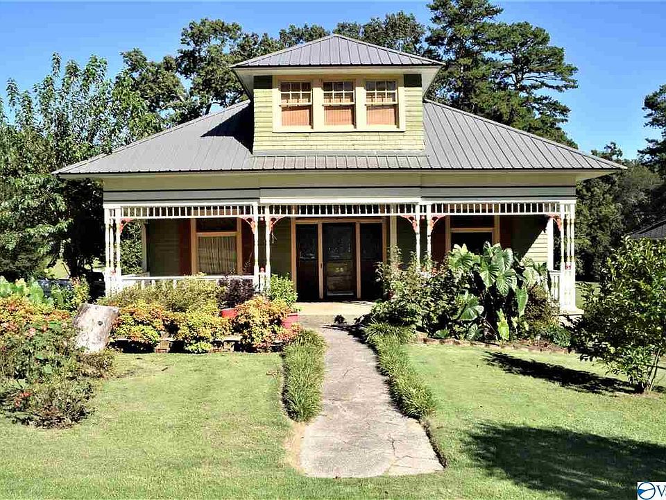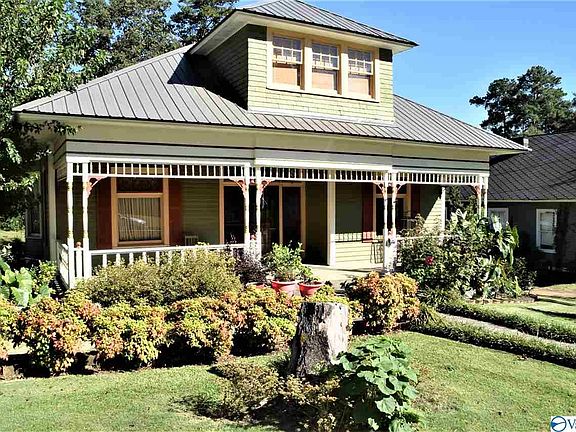 Gadsden- This Victorian historical home sitting on 1 +/- acre with 10 ft ceilings, hardwood floors, heavy detailed molding/trim work, pocket doors, built ins, metal roof, 3 bedrooms on main level, separate dining room with fireplace, kitchen with butlers pantry and french doors leading to breakfast nook, spacious family room, full bath with claw foot tub, upstairs has bonus room, bedroom, office/den, full bath with his and her vanity, screened in back porch, partial fencing, basement with workshop area, concrete pad suitable for RV/camper, and cute storage building. Mature fruit trees.