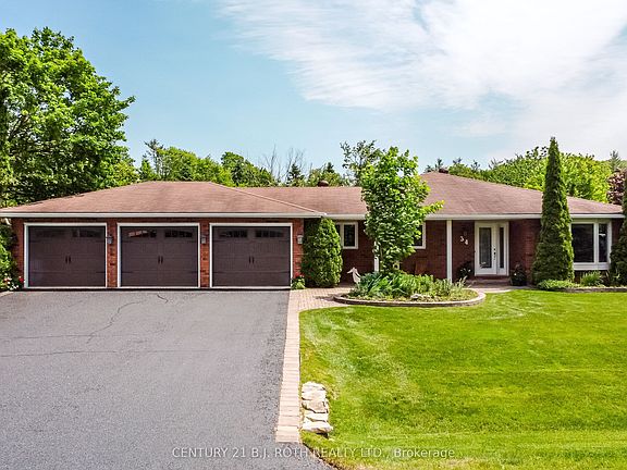 Welcome to coveted Midhurst and this sprawling ranch bungalow with triple garage, set on a premium lot backing onto mature forest & Willow Creek that meanders throughout the village of Midhurst. Over 3300 sq ft of living space on 2 floors, front foyer leads to a large, separate living & dining room, bright great room & eat in kitchen with sliding doors to the large deck with stairs that overlook the private lush backyard. Custom cabinetry in the updated kitchen, complete with Quartz counters, undercounter lighting, stone backsplash, double sink, easy close doors, multitude of pull outs & focal 4 x 8' island made out of wormy maple hardwood, with more great features on both sides. Surprise within the island is a 47' TV, accessed via a remote that lifts the tv from within! Family room with focal, energy efficient Regency woodburning fireplace. Primary bedroom with ensuite, plus 2 other bedrooms, main floor laundry room & updated main bathroom. Idyllic full walkout basement to yard & patio, bright & spacious recreation room with bonus projector & surround sound for family movie nights. Idyllic full walkout for inlaw capabilities, large family or guests. Warm focal Waterford gas fireplace for those cooler days or nights. Newer kitchen with eat in area, separate inside entry from garage, 2 extra bedrooms, 3 piece bathroom, and bonus custom built ins in a bright & organized hobby room, office or workroom. Midhurst is the perfect place to raise a family or to enjoy your later years. Coveniently located close to hwy, Barrie amenities, Lake Simcoe, ski hills, and many country roads leading you to your next adventure exploring this beautiful area.