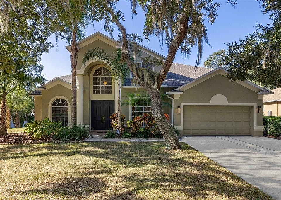 This beautiful home has everything you’re looking for - 4 bedrooms plus den/office, plus bonus room, 2.5 bathrooms, 2-car garage and a heated pool – all on a .40 acre lot in a great location! Enter through the double doors into the foyer, which opens to the formal dining room and formal living room. Just beyond is the spacious and bright kitchen and family room combo that overlook the lanai, pool and park-like back yard. The family room has a cathedral ceiling, sliding doors to the lanai and is open to the kitchen. The kitchen features 42” wood cabinetry, stainless steel appliances, pantry, snack bar and separate breakfast area with sliding doors to the lanai. The large owner’s suite is on the first level and has two walk-in closets, separate den, sliding doors to the lanai and a luxurious ensuite bath with two vanities, garden tub, walk-in shower and separate water closet. Upstairs you will find a bonus room/loft with French doors leading to a balcony that overlooks the lanai, pool and yard. There are also three large secondary bedrooms – one has a walk-in closet. This home has plenty of storage space including a big finished attic storage room accessible from one of the upstairs bedrooms. The exterior features a large screened and covered lanai with plenty of room to relax or entertain around the heated pool. The giant back yard has been beautifully landscaped with plants, palms and oak trees. Some of the many additional features are a newer roof (2021), newer ACs (2023 & 2018), new balcony (replaced in 2019) and tankless water heater. You get all of this along with great schools, nearby shopping, restaurants and everything Tampa Bay has to offer!
