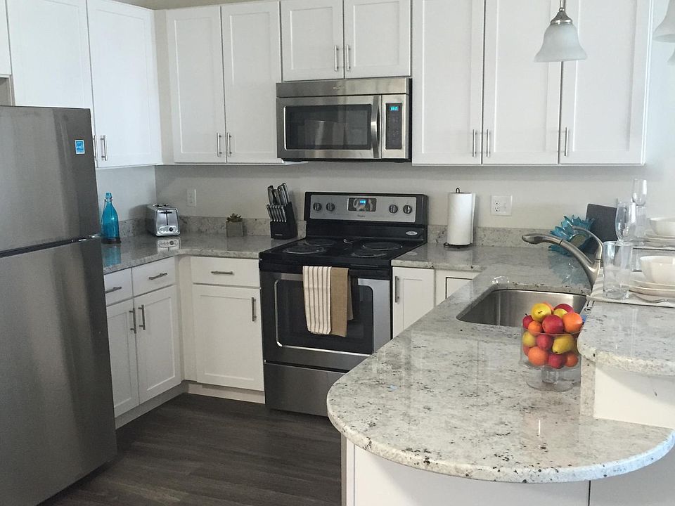 Modern Fully Furnished 2 Bedroom/2 Bath apartment features 1215 sq. ft. of living space consisting of living/dining room, breakfast bar, granite counter tops, stainless steel appliances, washer/dryer, balcony, one underground parking space and controlled front door access from inside the unit with video. All furnishings and utilities are included. Property has fitness room on site for use 24/7 and is within minutes to Gillette Stadium! *New bedding and towels, updated photos will be taken and uploaded week of 12/9 Unit fully furnished with utilities included.