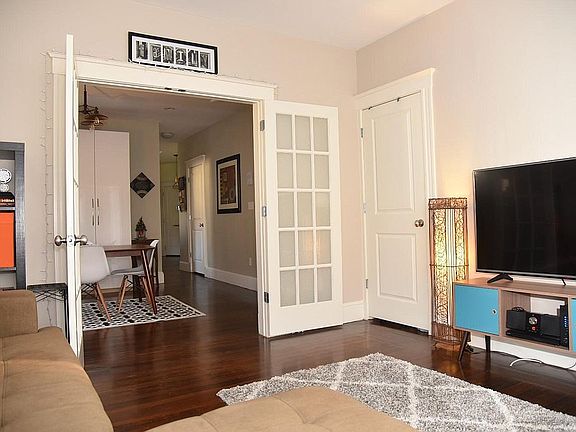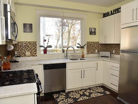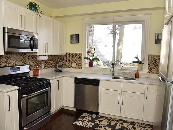Sunny first-floor 2 bedroom condo for sale in the Bourne area of Jamaica Plain. Features include marble countertops, gas stove, glass tile backsplash and stainless steel appliances. Beautiful hardwood floors and tall bay windows throughout. Central AC and heat provided by gas furnace. The unit also includes stacked washer/dryer, private deck and storage in addition to the deeded, off-street parking. Walking distance to Orange Line T stop, buses and parks.
