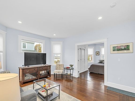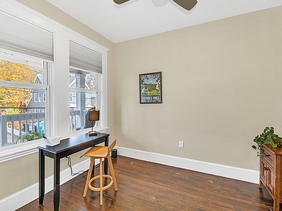 Fabulous and sunny condo home nestled in JP's historic Bourne District! Ideal as a two-bedroom + study, or utilize the bonus room for nursery/crafts/fitness -- or create a walk-in closet. Brilliantly-designed built-in wardrobe and shelving in the primary BR which has access to a shared front balcony. Living room with large piano window is a joy as you enter, and the generous kitchen w/marble counters and massive picture window makes dinner guests want to stay forever. Heat pump and hot water tank new in 2023. Large common side yard perfect for picnics, BBQs and croquet! In-unit laundry; private storage in basement, private back deck. This is an easy-care home with a very reasonable HOA fee. Building painted 2021. 5/6 units are owner-occupied. Healthy, stable association is pet-friendly. Super-low property taxes reflect owner-occupied status. Closing/occupancy date is subject to seller finding new home.