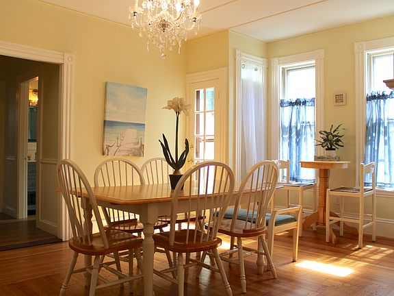 Dining roomDining room setSofa chairHardwood flooringSink with disposalMounted tvPlenty of street parking
