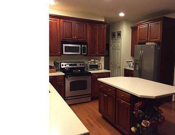 R-9277 This 4 bedroom, 2.5 bath was a model home for Brendford Woods. Not your standard 2 story family room- the staircase is on the side-with a very open foyer! Hardwood floors, columns, and coffered ceiling in the dining room. The kitchen features SS appliances, maple 42' cabinets, corian counter tops, cabinet built ins, kitchen desk, over sized island and 2 pantries. There is a large deck off of sunroom overlooking the pond. Upstairs you will find a large open hallway with 4 bedrooms are a generous size. The basement is finished with bilco door. Recessed lights throughout. Nicely arranged stone design in the front elevation of home. There is a sprinkler system. The lot offers privacy with open space in the rear (and a pond) and one side of the house is open space. This home is a SHORT SALE!