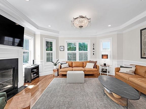 OFFER DEADLINE Monday @ 2 pm. Welcome to this STUNNING CUSTOM built contemporary Colonial w/4 levels of living space, allowing for separation of "working from home" or extended family w/1st floor den/office & 3/4 bath. This homes exudes charm w/attention to detail of wainscoting, crown moldings, plantation shutters, warm oak flooring, high ceilings, custom shelving, window seats, Elfa closet systems, & composite deck. Spectacular spacious custom red birch cabinet kitchen w/leathered quartz Taj Mahal island opens to an amazing FR w/fireplace surround/mantle. Lovely primary ensuite & 3 bedrooms complete the 2nd floor w/bonus room & 1/2 bath on 3rd. Walk out finished basement has wainscoting & electric fireplace. There is (1) attached & (1) detached garage! This prime "Peaks Hill" neighborhood provides close proximity to the Commuter Rail, Arnold Arboretum, downtown Boston's renowned medical centers, delightful restaurants, Library, & Chestnut Hill Shopping Center. Sunday 2:30 to 4:00..
