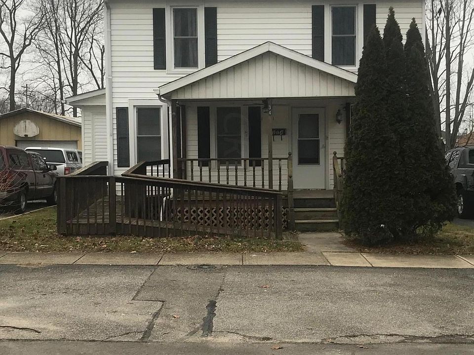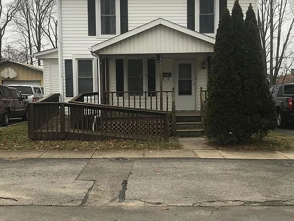 Nicely remodeled home, new carpet and flooring throughout. New furnace and Central Air (2018). Large dine in kitchen with beautiful cabinets. New half bath on first floor. 2-3 bedrooms with two large rooms upstairs. Large full bath and laundry upstairs. Large front porch with handicap accessibility. Replacement windows. One car detached garage and storage shed. Large storage closet on covered rear porch.