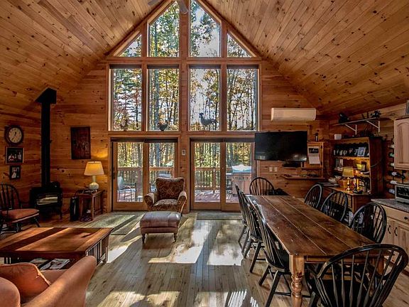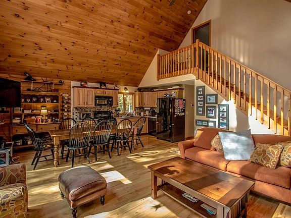 This Maine Cedar Log three bedroom, two bath home boasts many wonderful features. Expansive Cathedral Ceilings highlight a wonderful open living area, flooded with natural light from the beautiful large windows. Relax on the screened porch, which leads out to a lovely large deck, overlooking the in-ground swimming pool, with its own pool house. There is also a large two car heated garage, with additional living space featuring a one bedroom loft and a beautiful kitchen. Property features access to a great, sandy beach just a short walk through the woods. This exceptional home has it all, and is just waiting for the right family to come and enjoy it!