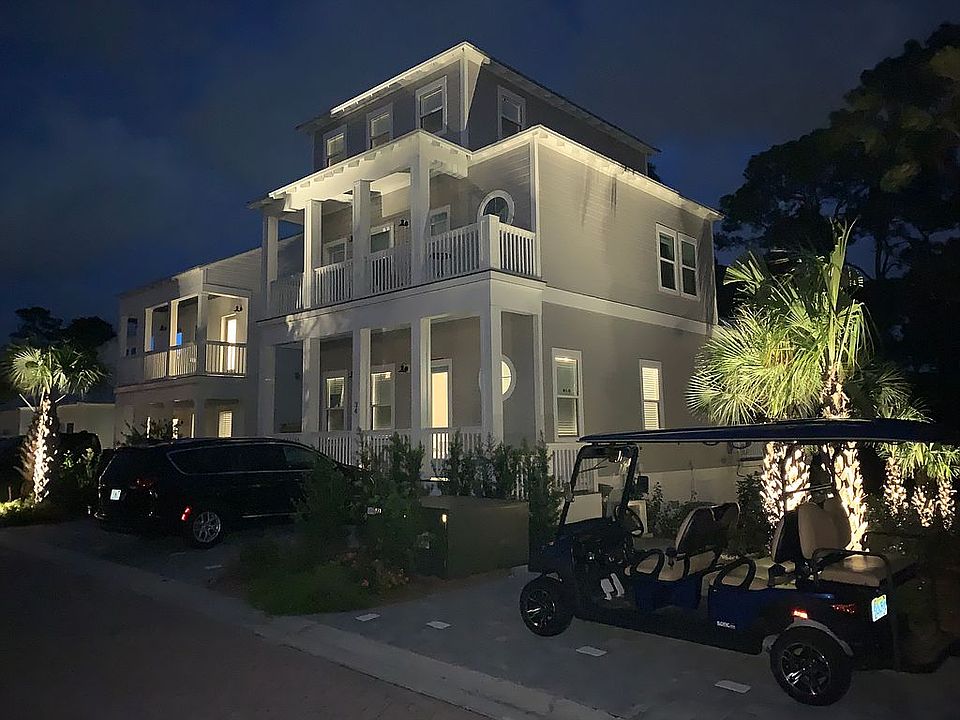 There’s something for everyone both indoors and out when vacationing in this spacious 4 bedroom, 4.5 bath beauty, Blue Opal. Named after the gemstone cherished to bring peace and joy into your life, Blue Opal was designed and furnished to provide your family just that, a completely relaxing and delightful beach vacation. Blue Opal simply meets every expectation on your vacation wish list: a gorgeous home, a private screened deck with grill, a great community pool, a golf cart for six, bikes and to top it off, Blue Opal is just a short walk away from the soft, sugary sand and sparkling blue-green waters of the Gulf of Mexico. Blue Opal presents an open kitchen, dining and living area, perfectly arranged for gathering the entire family together, yet with plenty of space to move about and stretch out your legs. You’ll love the beautiful and fully equipped kitchen featuring stainless appliances and quartz countertops. The breakfast bar seats three, and is an ideal place to sit and chat while keeping the family chef good company. And nothing will make your chef feel as appreciated as long and lasting dinner conversations around the lovely dining table that comfortably seats eight. Then it’s off to the movies as the great room just beyond the dining area features a 65” Samsung Smart TV with Bluetooth sound bar and more than enough seating room for everyone! With four bedrooms and a loft, Blue Opal restfully accommodates twelve. The third-floor queen bedroom with 43” Samsung Smart TV boasts a loft area with a pull-out queen sofa bed and a 55” inch Samsung Smart TV. The 2nd floor king bedroom has a 43” Samsung Smart TV and double vanity en-suite with shower bench. The twin over full with trundle bunk bedroom room has a 43” Samsung Smart TV and en-suite with doors to the balcony. You can also enjoy access to the 2nd floor balcony by the hallway workstation (we recommend you leave the work behind, but the work space is there if you need it). The first floor king master bedroom is located past the kitchen and has a 43” Samsung Smart TV. You are sure to enjoy the extra space in the en-suite master bathroom, featuring double vanity, rainfall shower and a shower bench. They say that blue opals are used to maintain good relationships with people around you. We can’t prove this to be a fact, but we are convinced that your family will love their vacation time together in this wonderful home, Blue Opal of Santa Rosa Beach.