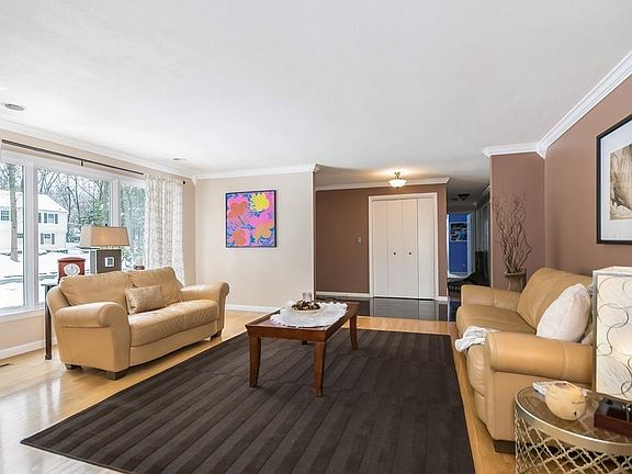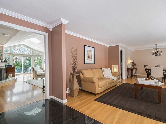 Wonderful flow throughout this spacious home...perfect for entertaining! Dramatic Great Room with skylights and fireplace opens to the Kitchen with granite counters, stainless steel appliances, beautiful bamboo floors and spacious dining area with vaulted beamed ceilings. Just off the kitchen is a first floor laundry..washer and dryer remain! Re-modeled tiled family bath. Master bedroom suite with re-placement windows and wood flooring. Dressing room leads to Master bath w/double sinks vanity, steam shower. The 4th bedroom could also be an office. Sliders off of the family room open to a deck overlooking private grounds. Finished game-room for family fun in the basement and a lav. Recent Updates: Master BR shower, 2 new furnaces, roof, skylights, Family room slider , bulkhead and chimney. Hot water tank less than 5 yrs.