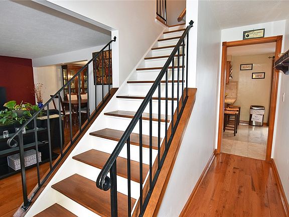 *****IMMACULATE, BEAUTIFUL colonial home nestled in the heart of the Meadowvale Estates Community located in Gates-Chili. This 3 bedroom, 2.5 bath home is definitely a show piece. There are glistening hardwood floors throughout, along with a fully finished basement for entertainment, family time, storage & extra rooms. Porcelain floors in the kitchen and bathroom. The hot water heat, furnace & central air system are all 2 yrs. old! There is a brand new very efficient electric stove/oven that was purchased in January 2024. This home sits on a perfectly manicured fully fenced lot. There is an attached 2 car garage with a new epoxy floor! There is a paved walkway from the garage to the backyard along with blacktop behind the garage. There is a hand-crafted deluxe deck that can be accessed through the French glass kitchen door. An outdoor efficient sink was installed to assist you at the cookouts. Wait there's more! The backyard has 2 apple trees, 2 pear trees and an herb/seasonings garden that produce.