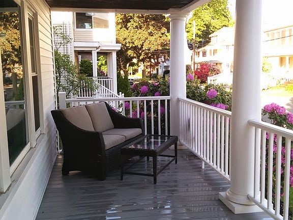 Recently gut renovated- everything is brand new. Stainless steel, granite kitchen. Large, open floor plan. Central air heating and cooling. Large master bedroom with two closets, one walk in. First floor with hardwood throughout and a fireplace. Own personal front porch. Washer/Dryer + 500sq ft basement storage. Two parking spots (one garage) included. Private backyard terrace with grill. Quiet side street with a quick walk to Cushing Sq and 73 Bus. Ready for move in September 15th. First month and security required. Contract terms negotiable; open to month to month or yearly lease.