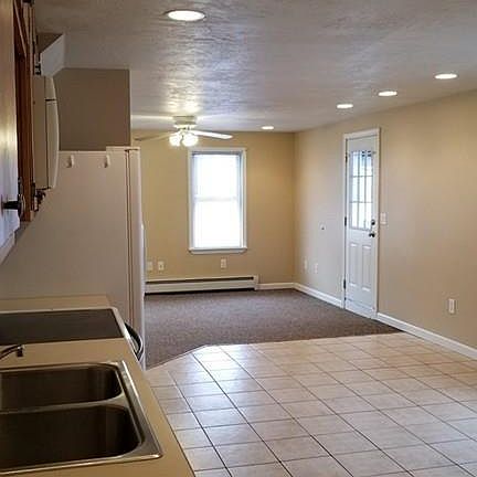 Large 2nd floor apartment with with spacious and open floor plan. Heat and hot water included in the rent. Enclosed porch for sitting and relaxing or as a sun room for your plants. Back enclosed porch has a front load washer and dryer. Large, fully applianced kitchen (range, refrigerator, dishwasher and microwave) with dining area. One bedroom on the 1st floor and two on the second floor. Small dogs 30 lbs and under might be allowed no dogs on dangerous dog list. Owner's discretion. No cats! Parking for two vehicles. Available immediately.