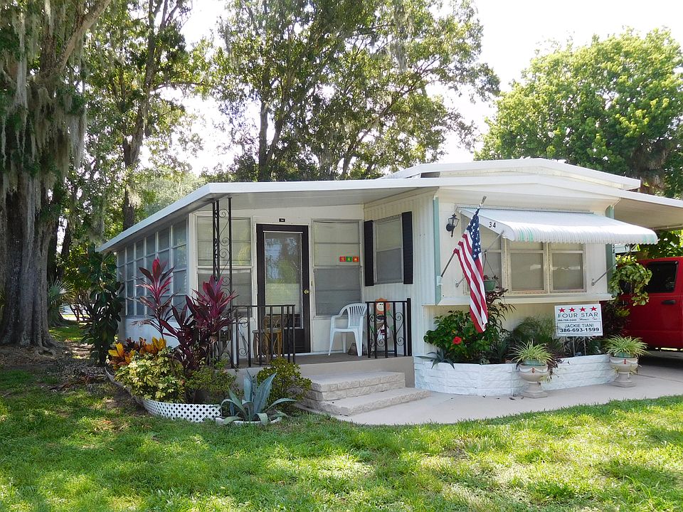 AFFORDABLE LIVING IN A GREAT LOCATION! Partially furnished single wide in a charming senior community with beautiful oak trees and a gentle ocean breeze. The community is conveniently located close to shopping, medical and transportation services. This home is in a land-leased community. The lot rent of $555 includes lawn, trash pickup, and all community amenities. The home features an updated kitchen, all newer plumbing and electrical, newer subflooring, laminate and tile throughout, spacious enclosed Florida room and long carport. Located a block away from the community clubhouse and swimming pool.