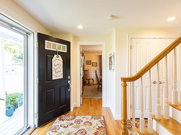 This colonial home is sited on a cul-de-sac in Granite Ridge. The first floor features an updated kitchen, granite counter-tops, stainless steel appliances, sliding doors that lead to a composite deck, a spacious family room with a gas fireplace, dining room, laundry room, lots of closets, hardwood floors and 1/2 bath. The second floor features a master bedroom suite with full bath and walk in closet, 2 additional bedrooms, full bathroom and a bonus room that could be used as a home office. The exterior is in MINT condition with no maintenance siding, over-sized 1 car garage, irrigation system, nicely landscape yard perfect for adults, children & pets. This move in ready home comes with an alarm system, central AC and is walking distance to Oak Ridge School and a short drive to Sandwich High School. Please note that due to the Pandemic, mask will be required to view.