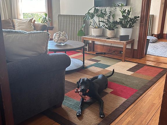 The flat is located on Munjoy Hill, East End. Situated on the second floor of a Queensland Victorian home on Congress Street, just three houses in from the Eastern Prom park. We have one room available for rent in a shared space. We are looking for one person who is respectful, responsible and clean. With views of Casco Bay, and an excellent location, this flat is spacious at 1500 square feet and has 1880s period-specific charm. Situated 100 feet from Eastern Prom (64-acre park and beautiful trail system), seconds away from Rosemont market, coffee shop, restaurants, St. Lawrence Arts/Theatre, bus stops, numerous walking trails, and minutes from the Old Port shopping district. We currently have a young black lab puppy, and unfortunately the landlords won't permit any more dogs in the space. We hope you take a peek at what this home has to offer, and if it's a good fit for you, please contact us for more details and walk-through. September 1, 2024-August 31 2025, utilities are included except internet. No smoking allowed.
