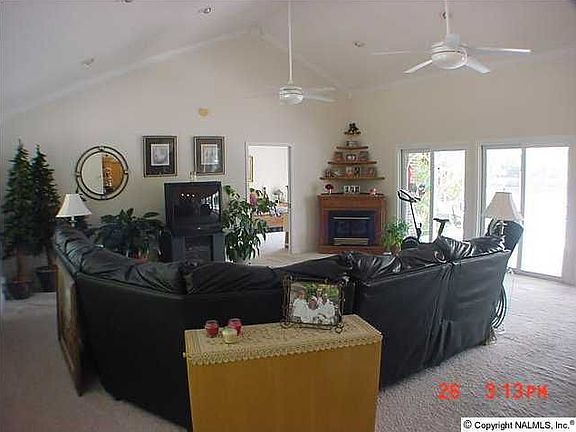 Lewis Smith Lake-One level brick home w/open floor plan & vaulted ceilings. Crown moulding in Grt Rm & Gas Log Fireplace. Grt Rm is open to kitchen & breakfast rm. All rooms on lake side for wonderful water views. There are two large bdrms & baths on each end of the home. The master offers a whirlpool tub & separate shower. Both bdrms have WI closets. Two covered porches-lake side porch has composite wood decking. Level lot to the water. Rock shoreline w/deep yr. round water. 1-slip boat dock.