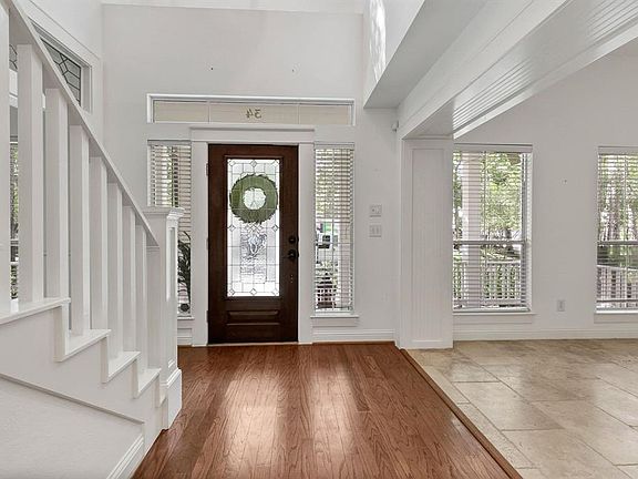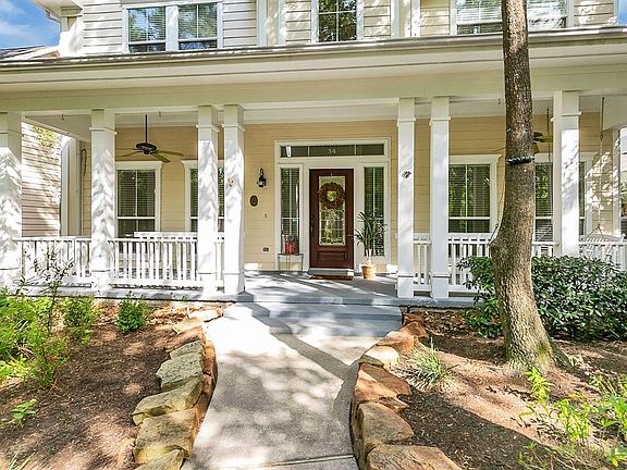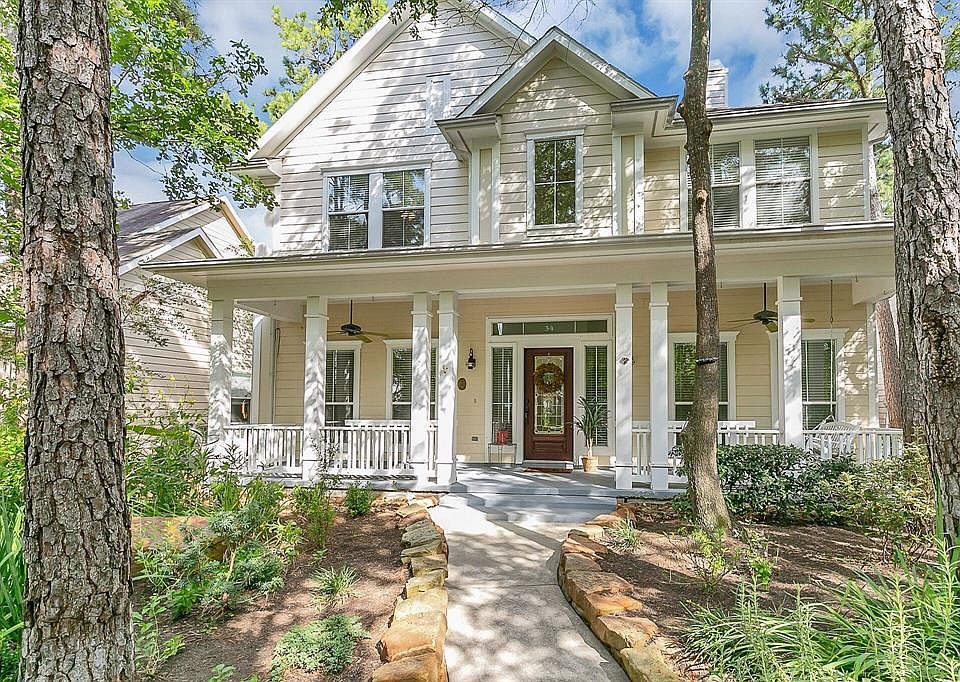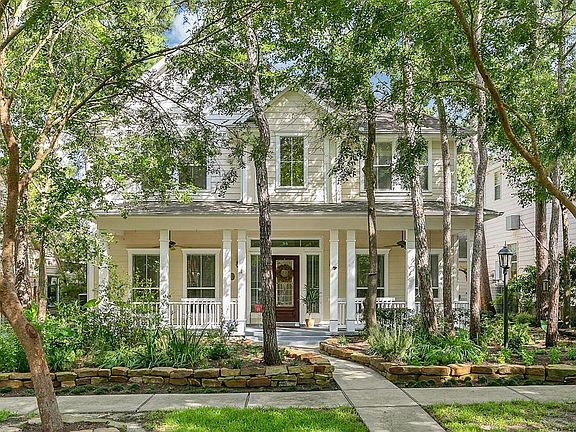 Charming craftsman style home with spacious front porch in quaint community w/nearby park. As you enter this light filled home you will immediately notice its unique character! Transom windows, nice trim work, wood floors throughout most of downstairs, gas fireplace, kitchen with center island, granite counter tops, stainless steel appliances (refrigerator included) & breakfast bar! New A/C and furnace installed Spring 2018. Lawn service provided by Cottage Green HOA!!! Don't miss the enclosed sunroom between the home and garage! Zoned to highly acclaimed schools in The Woodlands. Fantastic neighborhood!