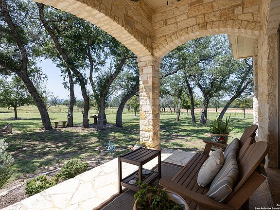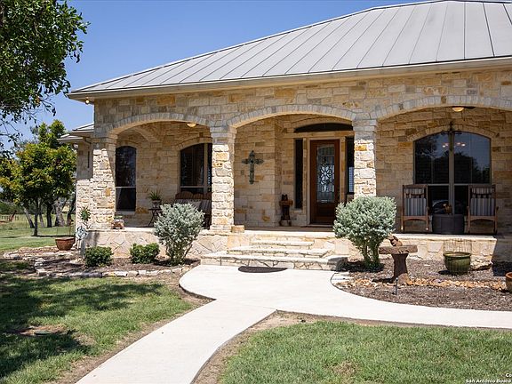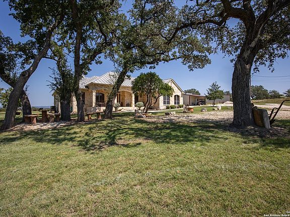 Experience Hill Country living at its finest with this unrestricted ranch property just 15 minutes from Boerne and the historic town of Comfort. Set behind a private electric gate, this property offers sweeping Hill Country views, wide-open spaces, and the perfect blend of comfort and functionality. The custom-built single-story home by Kevin Katzer welcomes you in. This beautiful home has a stunning floor to ceiling rock surround propane/wood burning fire place in the living room that sets the tone for conversations and cozy winter days. An open kitchen concept with oversized island has built in stainless appliances complete with warming drawer. The primary suite is separated from the other bedrooms and has outdoor access to the patio and includes a spacious en-suite bathroom. Double vanities, jetted tub and walk in shower. Laundry room with storage, sink and window for light. Step outside to a covered patio with seating and room for all the fun conversations! A pergola with built in sink, twinkling lights and and a round fire pit-ideal for evenings under the Texas sky. Designed with both recreation and ranching in mind, the property is fully fenced and cross-fenced, making it ready for livestock or horses. Two large barns (40x60) with enclosed storage area, a (30x45) with RV hookup, and a spacious 24x24 workshop (complete with bathroom) all feature electric service, providing ample space for storage, projects, and ranch operations. An agricultural exemption keeps property taxes low, spray foam insulation adds to the low electric bills, all adding long-term value to this remarkable Hill Country retreat. Whether you're seeking quiet country living, generational living opportunity, a property to work the land, an equestrian space, or simply a peaceful escape with modern conveniences nearby, this property offers it all. Get your showing scheduled today!