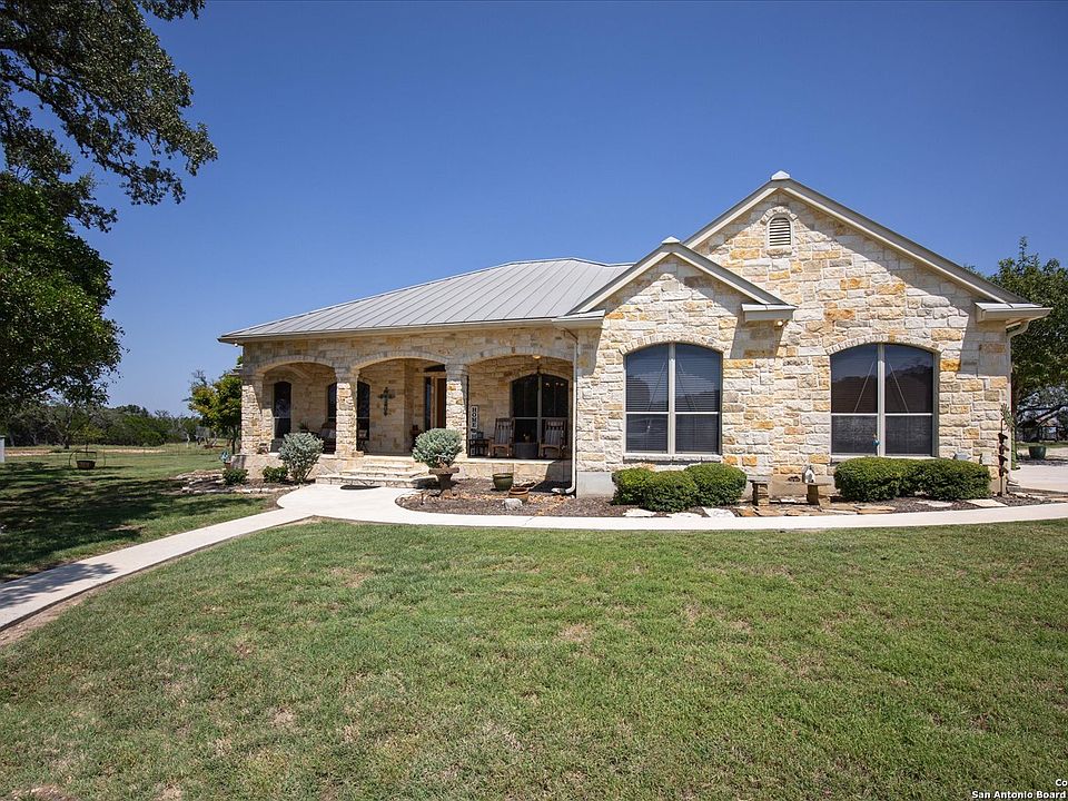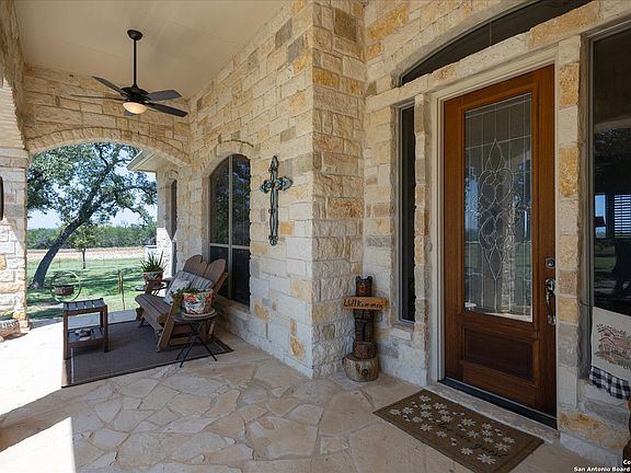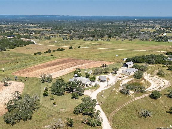 Experience Hill Country living at its finest with this unrestricted Ag-Exempt ranch property just 15 minutes from Boerne and the historic town of Comfort. Set behind a private electric gate, this property offers 2 Large barns, a workshop, sweeping Hill Country views and wide-open spaces The custom-built single-story home by Kevin Katzer is welcoming with a stunning floor to ceiling rock surround propane/wood burning fire place in the living room that sets the tone for conversations and cozy winter days. An open kitchen concept with oversized island has built in stainless appliances complete with warming drawer. The primary suite is separated from the other bedrooms and has outdoor access to the patio and includes a spacious en-suite bathroom featuring double vanities, jetted tub and walk in shower. The laundry room has extra storage, sink and window for light. Step outside to a covered patio overlooking the farm and enjoy the pergola with built in sink, twinkling lights and and a round fire pit-ideal for evenings under the Texas sky. Designed with both recreation and ranching in mind, the property is fully fenced and cross-fenced, making it ready for livestock or horses. Two large barns (40x60) with enclosed storage area, a (30x45) with RV hookup, and a spacious 24x24 workshop (complete with bathroom) all feature electric service, providing ample space for storage, projects, and ranch operations. An agricultural exemption keeps property taxes low, spray foam insulation adds to the low electric bills, all adding long-term value to this remarkable Hill Country retreat. Whether you're seeking quiet country living, generational living opportunity, a property to work the land, an equestrian space, or simply a peaceful escape with modern conveniences nearby, this property offers it all. Start 2026 off right with a piece of Texas to call your own.