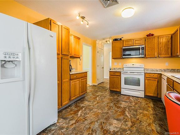 Now is your opportunity to move right into this lovely 3 bed, 2.5 bath Colonial located in one of Bloomfields most sought after neigborhoods. Situated on a quiet cul de sac which borders West Hartford this home features many updates and upgrades throughout. This beautiful home is so warm and welcoming as it is bathed in natural sunlight. Enjoy the newly updated kitchen with it loads of cabinets for storage, new counters, new floors, and newer appliances. A formal dining room is the perfect spot to entertain. Sit and relax in the living room with charming crown molding. The "grand" room will easily become your favorite room in the house with its vaulted ceilings with skylights, fireplace with blower and slider that leads to the large deck to the level, fenced in backyard. Head upstairs to the huge master suite that will comfortably fit all of your furniture, offers 3 double closets and a full bath. The other bedrooms are of good size with ample closet space. The additional full bath finishes the upstairs. There is a large finished lower level with newer flooring, painting and mirrors which is a nice space for fitness, office and/or den. Central air will keep you cool in the hot, summer months. An attached 2 car garage with newer garage doors and double wide driveway makes parking a breeze. There is even central vac! Come check this one out before it is gone!