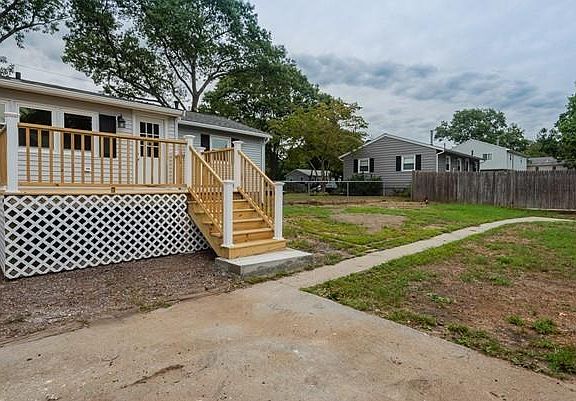 Wonderfully redone Ranch in a convenient side street location/neighborhood awaits you! Open flow with the Living Room and Kitchen open to one another, Cherry cabinets/granite counters/stainless steel appliances in Kitchen, sun-splashed first floor Family Room with loads of windows plus a good-sized new deck off to enjoy the warmer weather. 3 Bedrooms with brand new carpet, and a modern Bathroom. Nicely done Play Room/Man Cave etc. on the lower level for extra space. New windows and exterior doors, along with vinyl siding and an architectural shingle roof, makes for easy-care maintenance of the outside. Basement has laundry hookups, new gas furnace and electric water heater, and room for storage. Off-street parking on a nice corner lot. Enjoy all the town has to offer - shops, restaurants, parks/playgrounds, several newer schools, convenience to the highway & commuter rail. All this can be yours so don't delay!
