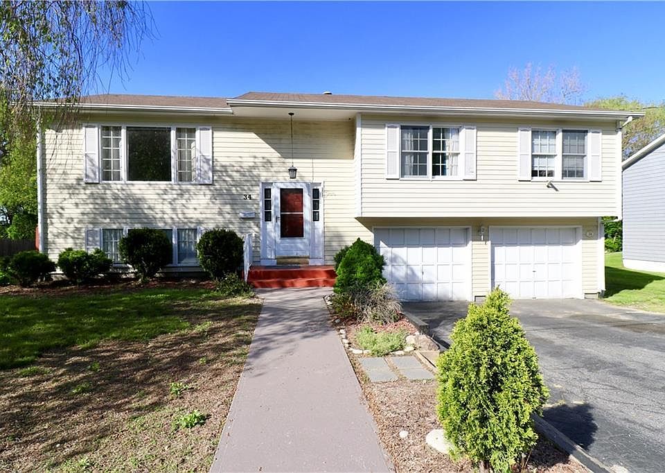PRICED TO MOVE QUICKLY!!...needs new carpeting, fence and cosmetics. Large Raised Ranch in Western Cranston is ready for your finishing touches. Master bedroom with its own bath; and 2 large extra bedrooms, 2nd full bath. Large living room with newer laminate flooring. Finished lower level with tile & 2 car garage. flat fenced yard, hot tub and outdoor shower. House is ducted for central air but needs a new compressor. Easy access to 295. MULTIPLE OFFERS--- HIGHEST AND BEST DUE BY 12NOON 5/23/19