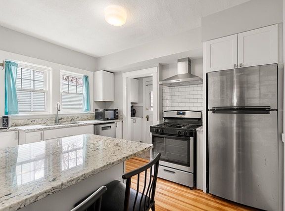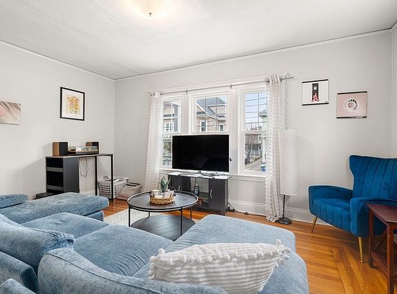 Bright and spacious 2BR/1BA first-floor apartment on a quiet street near Tufts, Davis Square, and the Red & Green Lines. Features include hardwood floors, a large living and dining room with charming built-ins, and a recently renovated bathroom and eat-in kitchen with marble countertops and stainless steel appliances. Both bedrooms offer great natural light and ample closet space. Enjoy a private deck, shared landscaped backyard with patio, in-unit laundry, and generous private storage. Close to shops, restaurants, Whole Foods, and the Mystic River. Apartment is in 2-family home shared with the owners of the property. Square footage does not include private basement. One year lease. Owner pays water and sewage. Renter pays gas and electric. No smoking allowed.