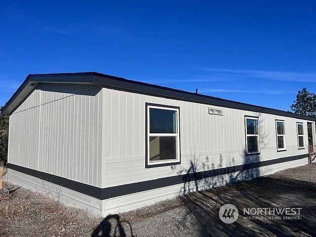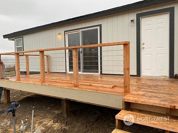 Partially renovated manufactured home on 4.76 acres with detached shop structures. This manufactured home has a new roof, new deck and front entry landing, and new siding and trim in places Also, new exterior paint. The kitchen sink and faucet system has been replaced, and the carpet removed from the home. The interior needs flooring, paint and some surfaces replaced. Seller is selling in "as is" condition.