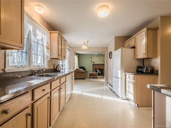 Light and bright 4 bedroom Colonial with eat-in kitchen features slider to deck, family room with fireplace, dining room with hardwood floors, formal living room with hardwood floors as well, large master suite with walk-in closet and full bath, first floor laundry room, New hot water heater, garbage disposal and beautiful front door.Easy access to Rails to Trails!