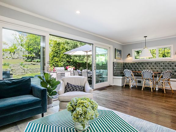OPEN. BRIGHT. INVITING! Nestled in one of Rye's most-sought after family neighborhoods, a short walk to schools, train and shops, a magnificent outdoor living area and backyard oasis and beautifully updated throughout. This 2,504 sq ft, 4 bedroom Contemporary Colonial truly is picture-perfect. Step inside and the views are breathtaking - a wall of glass opens from the free-flowing chef's kitchen and living room to the outdoor sanctuary with patio, built-in grill and banquette seating. Effortless entertaining and ample space for alfresco dining. Level lawns for play are adorned by stone walls, elevated garden beds and a canopy of mature trees for ultimate privacy. The new master suite is heavenly - modern and bright with walk-in-closet and spa-like bathroom. The lower level offers even more space to use however you wish - a playroom, exercise room, office area and plentiful storage. From the sun-drenched covered porch, to the convenient mudroom, this special family home has it all!